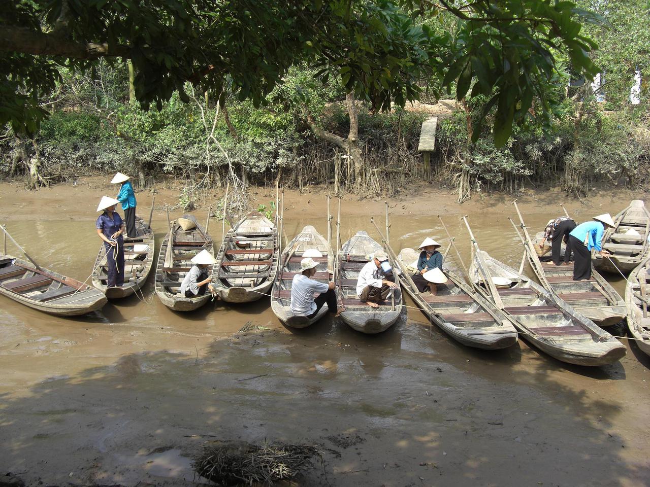Obwohl es auf der Karte relativ nah aussieht, benoetigt der Bus doch ueber 3 Stunden, um ans Mekong Delta zu kommen. Die Tour selbst startet dann mit einer Bootsfahrt zu einem Bereich, der normalerweise voll mit den kleinen Booten der schwimmenden Maerkte ist. War bei uns leider nicht so und so ging es ziemlich schnell weiter.