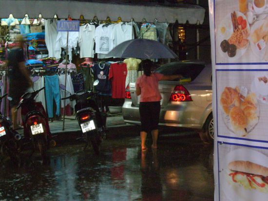 In Thailand wir der Monsun zum Autowaschen verwendet.