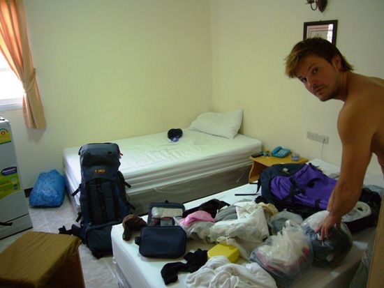 Beim Rucksackpacken und die Mitbringsel verstauen.