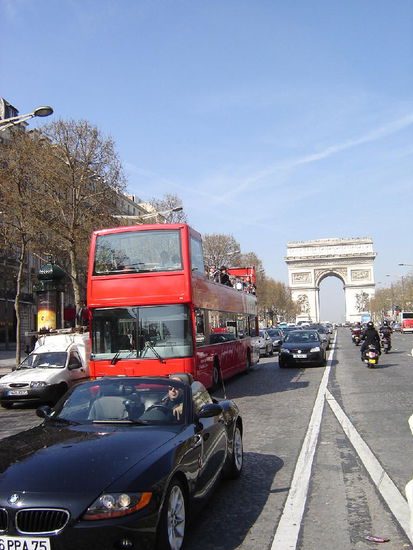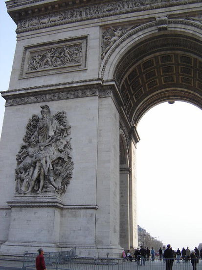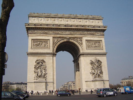 Auf der eindrucksvollen Sichtachse - dem kleinen Triumphbogen "Caroussel" beim Louvre und dem modernen Bogen von La Défense erhebt sich das 50 m hohe Wahrzeichen nach antikem Vorbild gestaltet. 1806 zu Ehren seiner "grossen Armee" in Auftrag gegeben, dauerte es 30 Jahre bis zur Fertigstellung. Unter dem Bogen befindet sich das Grabmal des unbekannten Soldaten.