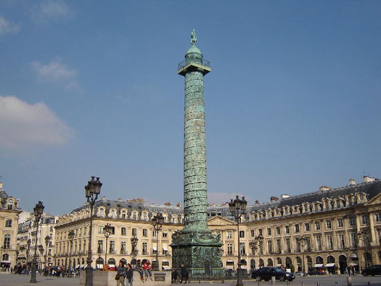 In der Mitte des Platzes steht eine Säule, die an Napoléons Sieg bei Austerlitz erinnern soll.