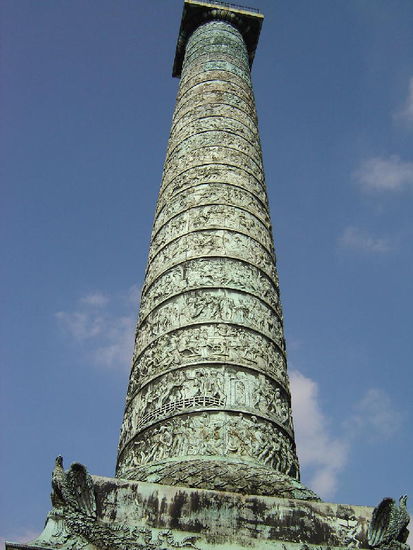 Die kriegerischen Bronzereliefs winden sich spiralförmig nach oben und wurden aus 1200 eroberten Kanonen aus der Schlacht bei Austerlitz gegossen. Obendrauf befindet sich eine Napoléon-Statue.