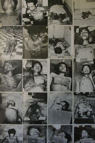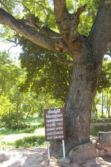Zu Beginn der Schreckensherrschaft wurden die angeblichen Gegner des Regimes, Maenner, Frauen, ja sogar Kinder, die man des Landesverrates beschuldigt hatte, sofort erschossen. Gegen spaeter wurden die Opfer von den Roten Khmer erstochen, erschlagen oder gar zu Tode geknueppelt um Kosten zu sparen. Waehrend der Herrschaft der Khmer sind ueber 2.000.000 Millionen Kambodschaner auf diese bestialische Weise umgekommen und bis heute werden immer wieder neue Massengraeber gefunden.