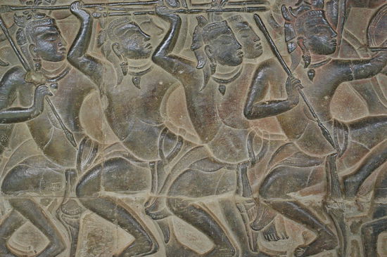 Da standen wir nun vor dem imposanten Bauwerk aus dem Jahre 1150. In der ca. 30 jaehrigen Bauzeit entstanden verschiedenste Reliefs, die teilweise bis zu 2m hoch und 700m lang sind, und ueberwiegend dem Hindugott Vishnu geweiht wurden. Aber auch die verschiedenen Hallen und Skulpturen in den einzelne Galaerien mit ihrer detailtreue von Schmuck, exotischen Frisuren und Gesichtsmienen faszinieren, stehen dem Gesamtkomplex in nichts nach.