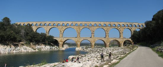 Der Pont du Gard war Teil einer fast 50 km langen Wasserleitung, mit der Wasser von den Quellen nahe Ucetia (Uzès) zur römischen Stadt Nemausus (Nîmes) transportiert wurde. Die Brücke ist 49 m hoch und umfasst drei Etagen: