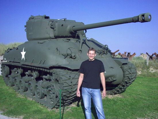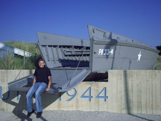 Am Morgen frühstücken wir gemütlich auf der Wiese auf der wir übernachtet hatten, obwohl sie vom morgendlichen Tau etwas feucht war. Wir verspeisten die leckeren, aus Deutschland mitgebrachten Sachen und machten uns nach einer Katzenwäsche schnell auf den Weg zur Autobahn Richtung Caen, denn dort ist Omaha und Utah Beach, welches wir an diesem Tag besichtigen wollten.