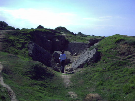 Dort sind noch viele der Bunker erhalten und man konnte sie auch von innen besichtigen. Die Fläche ist ziemlich groß und es dauert einige Zeit bis man alles gesehen hat, aber es ist auch sehr interessant. Im Grunde sieht es in Omaha Beach so aus wie die Deutschen bzw. Briten es vor 60 Jahren verlassen haben. Überall liegt noch Stacheldraht und einige Mauern der Bunker sind zusammengefallen (wahrscheinlich durch die Bomben oder Granaten vor 60 Jahren) und wurden einfach liegen gelassen. Teilweise sah man große Krater.