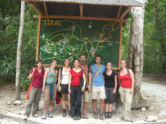 Fast die Haelfte meines Aufenthaltes in Guatemala ist jetzt schon vorbei. Ging mal wieder ganz schoen schnell! Wird also langsam mal Zeit euch wieder was zu berichten!Eine Woche habe ich jetzt noch Schule.Danach werde ich dann zusammmen mit Inga anfangen zu arbeiten.Unser Projekt heisst Nino Obrero.Hatten schon mal die Moeglichkeit uns das Projekt anzusehen.Es wird auf jeden Fall nicht ganz so einfach!Ist so ziemlich das aermste Projekt hier in Antigua.Das heisst es gibt wirklich gar keine Materialien und es ist dreckig. Und manchmal fehlt sogar das Geld um Essen fuer die Kinder zu besorgen!Wir beiden werden uns vorraussichtlich um die Juengsten der Truppe kuemmern (ca.6Jahre).Da diese Kinder keine Lehrerin haben weil zu wenig Personal vorhanden ist. Wir sind auf jeden Fall froh, dass wir nicht alleine sind.So koennen wir uns auch gegenseitig beim Spanisch ein wenig aushelfen. An den Wochenenden werden wir aber weiterhin Ausfluege unternehmen, um moeglichst viel vom Land zu sehen. Obwohl unser letzter Trip schon schwer zu toppen ist.Mit einer Gruppe von 8 Leuten haben wir uns aufgemacht nach Flores und Tikal. Donnerstag in der Nacht ging es los. Eigentlich hatten wir geplant die Nacht im Bus moeglichst viel zu schlafen.War aber mehr oder weniger unmoeglich, da wir fast jede Stunde aufgrund irgendwelcher Kontrollen oder Baustellen angehalten haben. Nach einer halben Stunde mussten erstmal alle Maenner aussteigen und wurden von der Polizei nach Drogen untersucht. Bei den Maedels wurde also erstmal aufgeatmet.Ganz so vertrauenserweckend war die Polizei naemlich nicht.