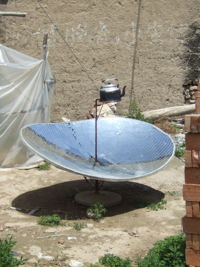 Auf dem Weg nach Binling Si haben wir diese Entdeckung gemacht. Dachten zuerst es waeren Sat-Schuesseln, aber es handelt sich um Warmwasserzubereitung in herrlichster Form.
