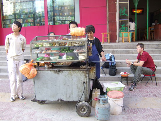 Es war wieder ein Englischlehrer, der uns in Linxia ueber den Weg lief und uns weiterhalf als er Fred und mich umrundet von vielen Einheimischen entdeckte, waehrend wir nach dem Weg ins Zentrum fragten.