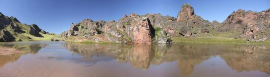 Suedlich von Salta, auf dem Weg nach Cafayate erstreckt sich die "Quebrada del Rio de las Conchas". Ein Fluss hat diese Schlucht in den rotfarbenen Sandstein gefraesst und einige markante Felsformationen hinterlassen.