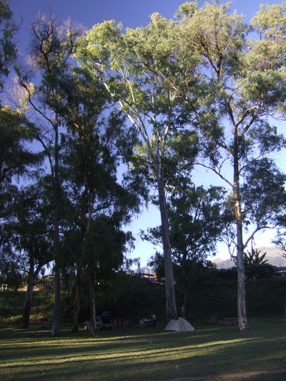 Uebernachtet wird in Chicoana auf dem oeffentlichen Campground, wo riesige Eukalypten wachsen, die wir bereits aus AUS kennen.