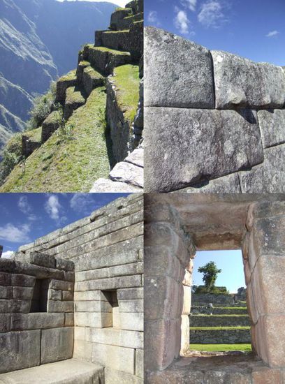Die Haeuser der Inkas waren stets aus Stein gebaut, lediglich der obere Teil einer Wand bestand manchmal aus Lehm-Stroh-...-Mischungen. Die Daecher waren natuerlich auch nicht aus Stein und mussten irgendwie mit der Steinkonstruktion darunter verbunden werden.....