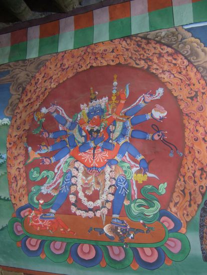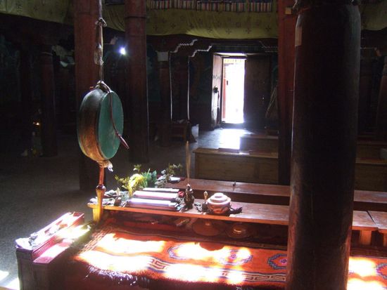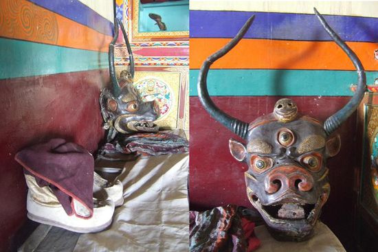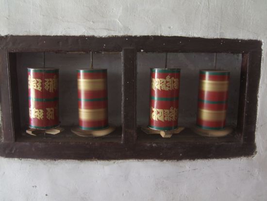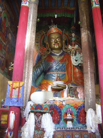 In Markha steht eine "Gonpa", die von einem einzigen Moench bewohnt wird. Wir besuchen das Kloster und Vivi fragt ihn, ob er Kolakh fuer sie zubereiten kann. Er freut sich ueber Gesellschaft, lotst uns in zwei Gebetsraeume und danach in sein Zimmer...