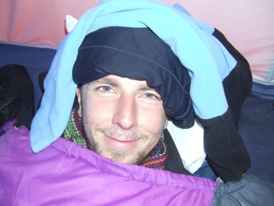 Die Nacht war kalt aber wir haben unsere Plastikflaschen mit heissem Wasser gefuellt und diese dann in den Schlafsack gesteckt, somit wars nur halb so schlimm. Es hat geschneit ueber Nacht und ich freu mich ueber ein wenig Winter!