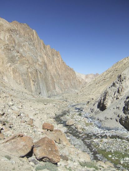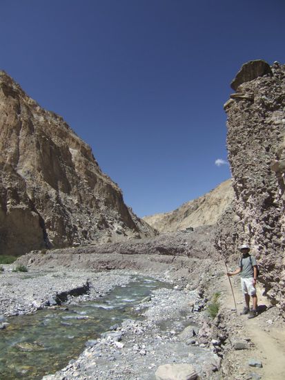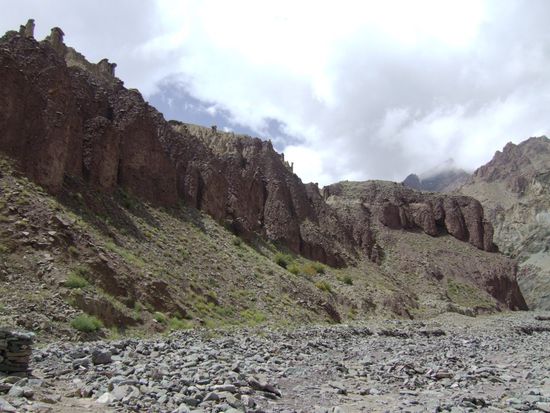 Eigentlich ist schon Tag fuenf aber erst der zweite Trekkingtag. Heute fuehrt unser Weg durch eine wunderschoene Schlucht, immer leicht ansteigend bis in ein kaltes Base Camp vor dem Gongmaru Pass.