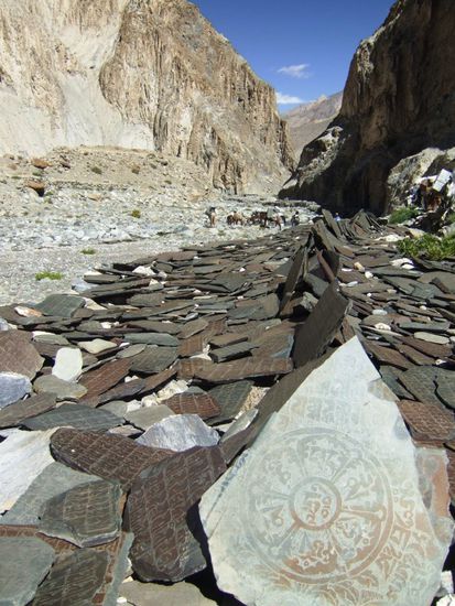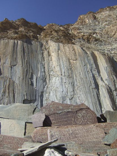Es finden sich immer wieder Anhaeufungen von Steintafeln mit eingemeisselten Mantras