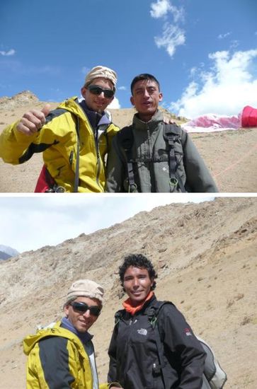 Alexis, der professionelle Paraglider aus Frankreich, macht den "Fehler" im Internet sein Video des Tandemflugs vom Gipfel des Stok Kangri (6137m) aus zurueck ins Basecamp zu zeigen. Eine Schar von 10-15 Personen versammeln sich um den Computer und sind hin und weg von der Aktion! "Tomorrow, you fly with us, ok?" fragt Tashi und der gutmuetige Alexis sagt nicht nein...
