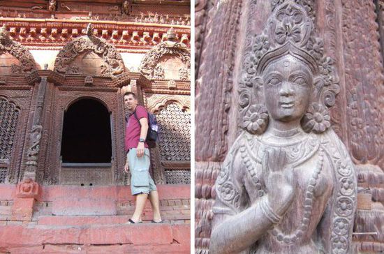 Der Durbar Square, Herzstueck des alten Kathmandu, ist eine Anhaeufung von Tempeln und Schreinen mit kunstvoll geschnitzten Daechern, Tueren und Fenstern.