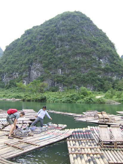 An einer Stelle mussten wir den Fluss mit einem Bambussfloss ueberqueren.