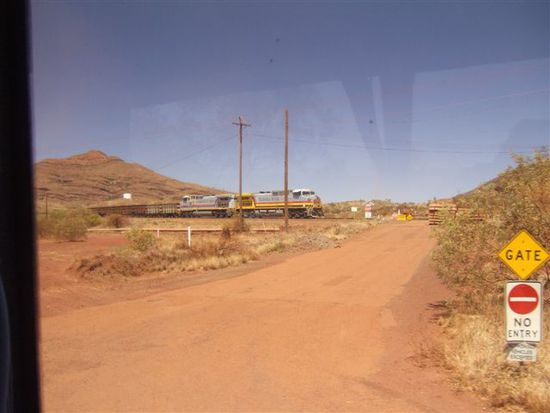 Wir nehmen hier an einer Minentour teil und fahren zwei Stunden ueber das Minengelaende. Der Abbau findet hier nur oberirdisch statt und das Erz wird per Eisenbahn an das noerdlich gelegene Port Hedland verfrachtet, wo es auf Schiffe kommt und weiter in die Abnehmerlaender geliefert wird.