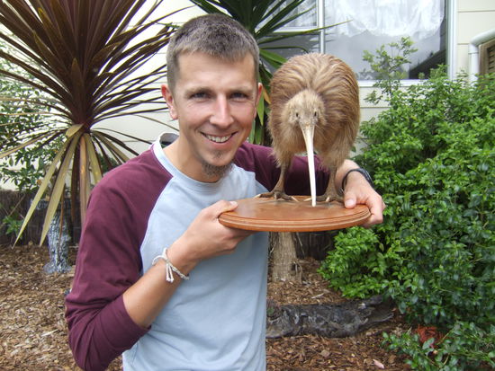 Um 21:30 starten wir den naechtlichen Spaziergang. Leider gibt es keine Fotos davon, aber ich kann Euch soviel von der Wanderung erzaehlen: wir haben einen Kiwi gesehen und bekamen vor lauter Freude das Grinsen nicht mehr aus dem Gesicht. Bei Herb haben wir jedoch ein Foto mit einem ausgestopften Exemplar machen koennen, damit ihr eine Vorstellung habt, von welch herrlichen Tier hier ueberhaupt die Rede ist: