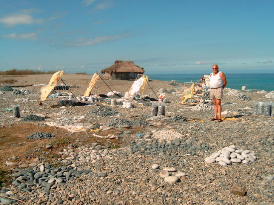 Die erste Woche des neuen Jahres beschließen wir mit dem Besuch eines Steinmeeres, d.h. es ist ein Kilometer langer Strand nahe Luna. Hier hat wohl vor vielen tausend Jahren aus den Bergen eine riesige Steinlawine ihr Ende gefunden. Die Filipinos sortieren nun diese Steine nach Größe und Farbe und jeder der Bedarf hat kann sie sich für wenige Peso abholen. An vielen Häusern und in Gärten kann man sie wieder entdecken, teils als Verzierung an den Häusern und Treppen oder als Beeteinfassungen.