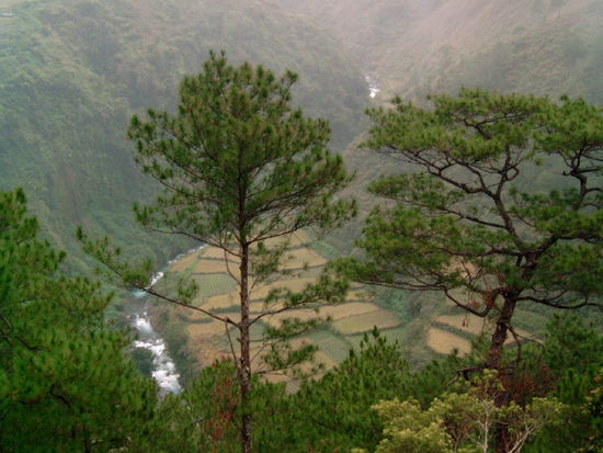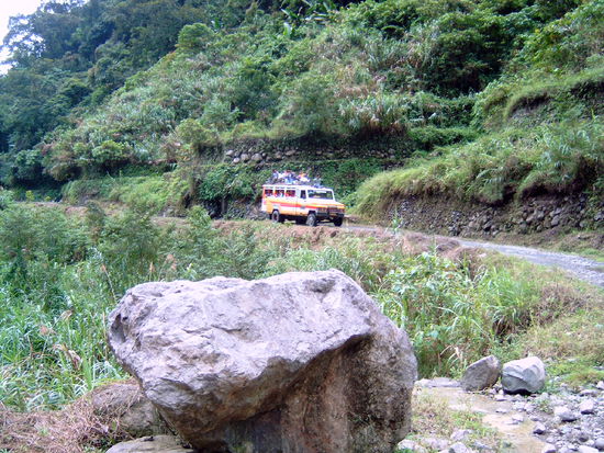 Im Tal angekommen bogen wir rechts ab und schon sind wir auf der berühmten "Halsema Road" die über 130 km von Bontoc bis nach La Trinidad führt. Viele Kilometer fahren wir am "Chico River" entlang in dem viele kleine und große Felsen liegen, in der Regenzeit ist er sicherlich ein ziemlich reißender Fluss. Weiter geht es über gewundene Straßen teils im Tal aber immer an den Bergen entlang, durch unterschiedlich große Siedlungen.