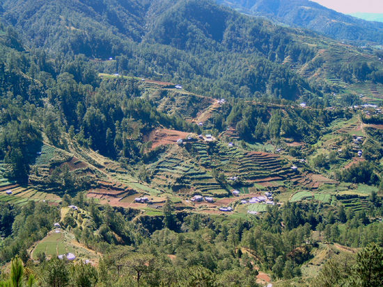 In "Sinipsip" erreichen wir nun eine ganz neue Landschaft. Waren es vorher die Reisterrassen, sind es hier die wunderschön angelegten "Natubleng Vegetable Terrassen". Soweit das Auge reicht, sehen wir bis in höchste Höhen die terrassierten Berghänge - hier wird Gemüse angebaut. Das Gemüse aus "Benguet" kann man nicht nur auf den Märkten der angrenzenden Provinzen kaufen sondern es wird bis nach Manila, Cebu ja sogar nach Mindanao geliefert.