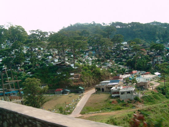 Baguio - die Blumen- und Universitätsstadt auf ca. 1600m Höhe, umgeben von Wäldern und hohen Bergen und mit für uns Europäer angenehmen Temperaturen. Ein Taxi brachte uns zum "Botanischen Garten" - von ihm waren wir diesmal sehr enttäuscht. Er hatte mit dem, den wir im Jahr 2003 besuchten kaum noch Ähnlichkeit, überall Müllecken, die schönen Häuser der Bergvölker fehlten bis auf eines alle. Nach nur kurzem Aufenthalt fuhren wir dann weiter zum "Mines View Point", die vielen Souvernierstände gab's noch immer, aber vor allem der sagenhafte Blick in die Täler hatte es uns angetan.