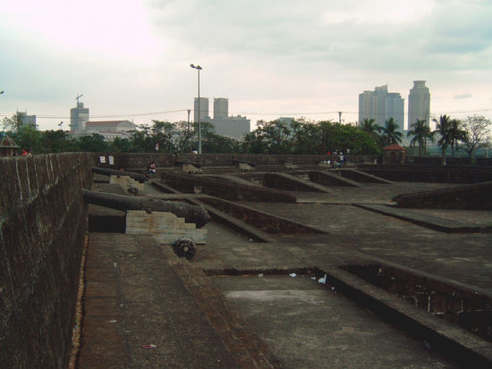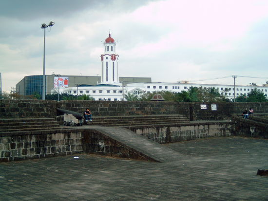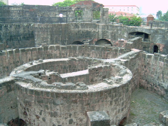 - eine Stadt < innerhalb der Mauern > - meterdicke Steinwälle hielten einst die Feinde ab, erst durch den Bombenhagel im 2. Weltkrieg wurde Intramuros fast völlig zerstört. Von den einst 7 Toren der Stadt sind Zwei inzwischen erneuert. Allerdings, so war zumindest unser Eindruck hat man wenige der historischen Gebäude wieder aufgebaut, es macht alles einen sehr modernen Eindruck. Jedoch hat man an Stellen ehemaliger bedeutender Gebäude Bildtafeln aufgestellt.