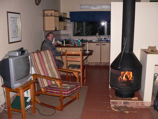Obwohl wir immer noch keinen Strom hatten genossen wir die Lage doch sehr. Das war doch mal Afrika pur. Gerit heizte dem offenen Kamin kräftig ein und ich kochte im Camper unser Abendessen. Wir waren an diesem Abend wohl die einzigen Gäste, die nicht im Restaurant zugegeben waren. Da nun Freitag war hatte sich das Camp mächtig gefüllt und so gut wie alle Chalets waren belegt. Ein Pärchen war sogar in der Honeymoonsuite - wie romantisch so ganz ohne Heizung und Strom!