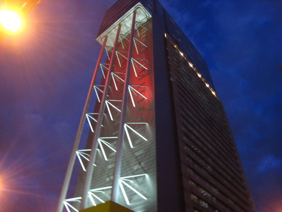 Von hier erscheint die abendliche Skyline von Bisbane am