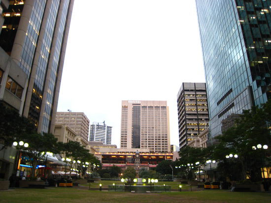 Roma Street - George St. - Victoria Bridge (Art Gallery & Museum and Queensland Cultural Center) - Queen Street (Mall), Fuessgaengerzone bis Edward st. und wieder ueber die George St. zurueck. Stop bei PeterPan Travel (Gratis Internet!). Auch hier im Hostel ist Gratisinternet!