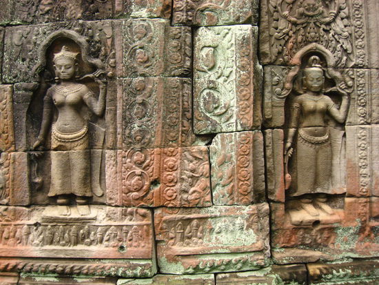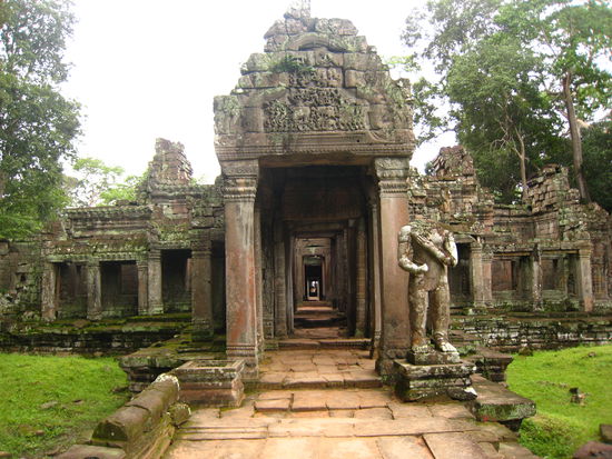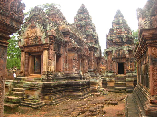 Das Wetter war heute sehr zufriedenstellend: kein Regen, angenehme Temperatur. Gerne haette ich mit Sonne (und als Nachteil die Hitze) getauscht, um die Steine/Sandsteine der Tempelanlagen in Farbenpracht sehen zu koennen. Man kann halt nicht alles haben!
