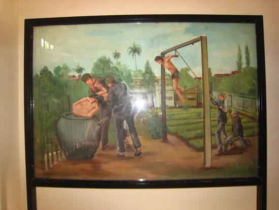 Die erste Station war Pol Pot's Grusselkabinett und Folterkammer" S-21", welches die offizielle Bezeichnung Toul Steng Genocide Museum hat. Nein, es ist nicht zum Lachen, das ganze Ausmass des Khmer Rouge Regime's aus den Jahren 1975 bis 1979 (noch gar nicht so lange her!) ist hier sichtbar. In einer ehemaligen Highschool hat das Khmer-Regime um Pol Pot ca 17.000 Menschen hier gefoltert und umgebracht.