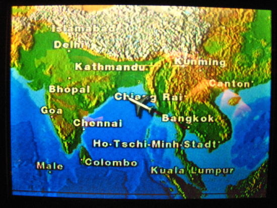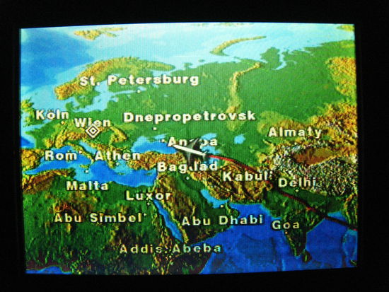 Der Flug fuehrte ueber Burma, Indien, Pakistan, Afganistan, das Kaspische Meer, das Schwarze Meer, Rumaenien und Ungarn nach Wien.