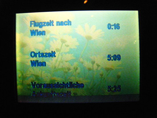 Waehrend des Fluges habe ich kaum oder gar nicht geschlafen, die Enge im Flugzeug und das unangenehme Empfinden der Air Condition haben dazu gefuehrt.