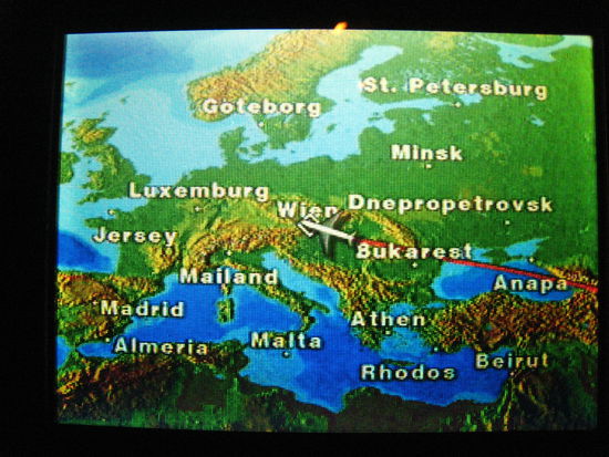 Der Flug mit der bis zum letzten Platz befuellten Boeing 777-200 verlief bis Wien ausserordentlich ruhig.
