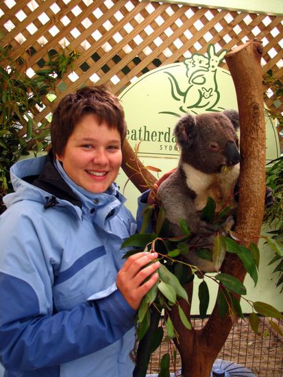 Gestern sind Graham und ich vormittags in einem Wildlife Park gewesen und habe uns mal die einheimischen Tierchen aus der Naehe angeschaut. Und klar das Foto von mir und einem Koalabaer darf natuerlich nicht fehlen. Es hat nur leider geregnet, daher bin ich so eingepackt: