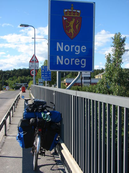 Ein paar Meter noch ueber die grosse Bruecke und wir haben es geschafft. Wir sind jetzt in unserem 4. Reiseland angekommen. (14.6.07) Weit und breit kein Zoellner zu sehen, ging es ueber eine maechtige Steigung unserem neuen Abenteuer entgegen. Wir konnten es kaum glauben, dass wir schon soweit mit dem Fahrrad gekommen sind.
