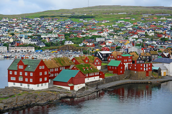 Fast puenktlich um 19:00 Uhr ging es los. Die Faehre legte vom Hafen in Bergen ab und tschipperte los Richtung Faroer Inseln. Wir waren ganz schoen erstaunt, wie gross die Noroenna (Name des Schiffes) war. Fuer die ca. 22 Std. Fahrzeit waren wir in einem Couchette untergebracht. Was aber eher eienr Besenkammer gleicht, inkl. 3 Stockbetten. Aber auch fuer Unterhaltung ist gesorgt, so kann man sich entweder im Buffett, exclusives Restaurant, Bar oder Disco gemuetlich machen. Aber die meiste Zeit verbrachten wir in unserem Schlafgemach, weil wir feststellen mussten, dass aus uns keine grossen Seefahrer werden. Die Seekrankheit hatte uns voll im Griff. Und so waren wir froh, dass wir am Nachmittag bei herrlichem Sonnenschein Torshavn erreichten.