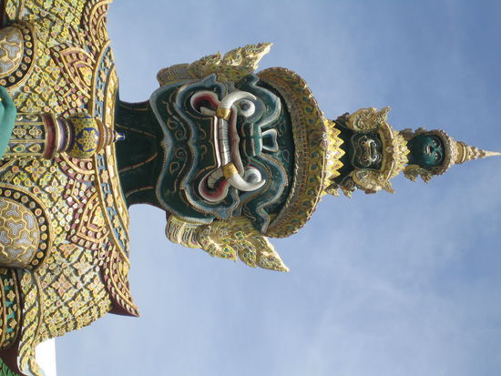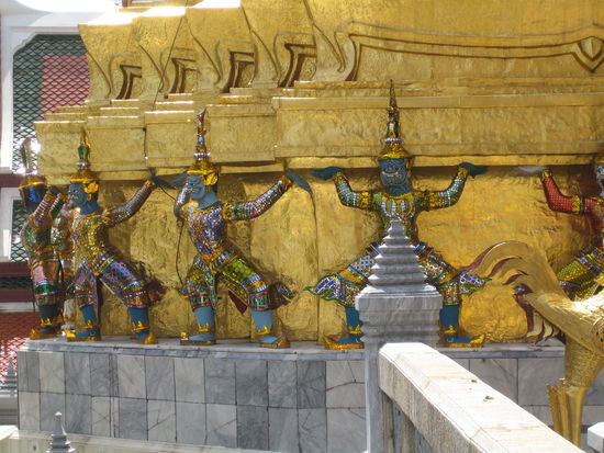 dann, erste Sightseeing-Station: Great Palace und Emerald Buddha Tempel...wunderschoen...als, an eher nuechterne Architektur gewoehnter Europaer steht man staunend vor goldenen Stupas und Tempeln und Figuren...irgendwie ist auch das Gedraenge zwischen den anderen Touristen hier angenehmer als anderswo...die Leute sind einfach freundlich und zuvorkommend...nachher wollten wir eine Longtailboattour buchen, allerdings war mit das mit 1.000 Baht dann zu teuer...nun bin ich wieder in Hotel, um mir fuer den Nachmittag einen neue Tour auszudenken...und zu duschen...es ist unheimlich heiss und feucht hier...das Wasser rinnt ebenso schnell aus dem Koerper wieder heraus, wie man es hineingiesst...
