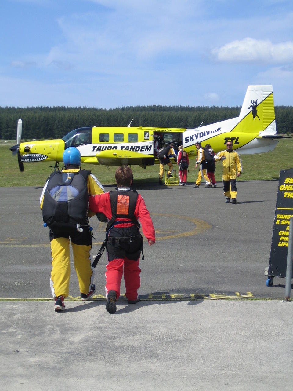 Ich habe es gewagt und mich in Taupo aus 1500 Feet Höhe (4575 m) aus dem Flugzeug gestürzt. Schon Irrsinn, aber den Fallschirmsprung habe ich mir zum Geburtstag geschenkt. Nach dem Abflug gibts kein zurueck mehr. War eng an meinen Body JK gebunden und als er aus dem Flugzeug raus ist, hat er mich sozusagen vornedran rausgeschoben...