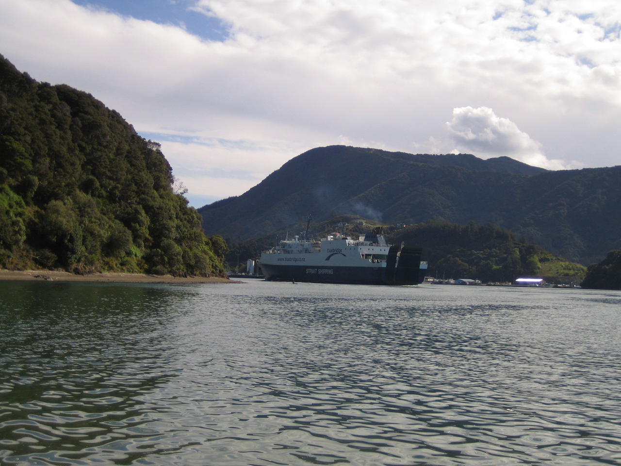 Die 92 km lange Überfahrt vom südlichsten Punkt der Nordinsel (Wellington) zum nördlichsten Punkt der Südinsel (Picton) haben wir mit der Morgenfähre am 17.10. gemacht. Es lohnt sich in jedem Fall die kleine Schiffsreise bei Tageslicht vorzunehmen. Die beeindruckende Landschaft der Cook Straits und die Buchten der Malborough Sounds versetzen dich ins Staunen. Zunächst siehst du die Skyline der Metropole Wellington entschwinden und fährst vorbei an vielen Stränden der östlichen Küste. Da die Fähren den engen Fjordarm des Tory Channel und den Queen Charlotte Sound durchqueren und nur mit 19 Knoten fahren, dauert die Überfahrt etwa 3-3,5 Stunden.