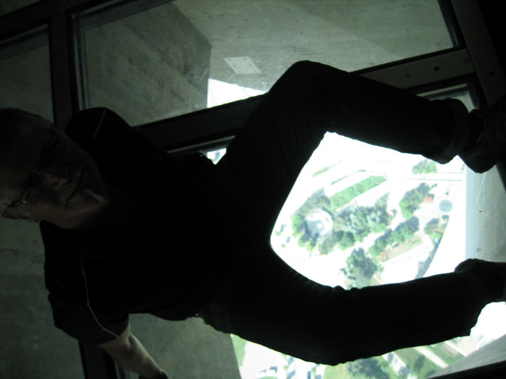Auf dem Glasboden sitzend als Schattengespenst. 500 m uerber dem Boden, ist nicht fuer jeden eine einfache Sache dies zu tun.