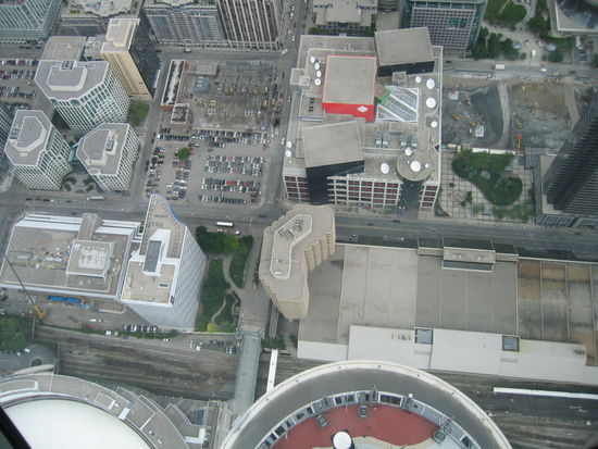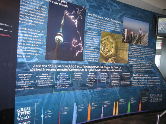 Der Tower ist 553,33m hoch. Auf 447 Meter Höhe befindet sich der Sky Pod, das höchste Aussichtsdeck der Welt. Das auch am Turm befindliche Restaurant mit Aussichtsterasse und Glasboden liegen 100 m tiefer.