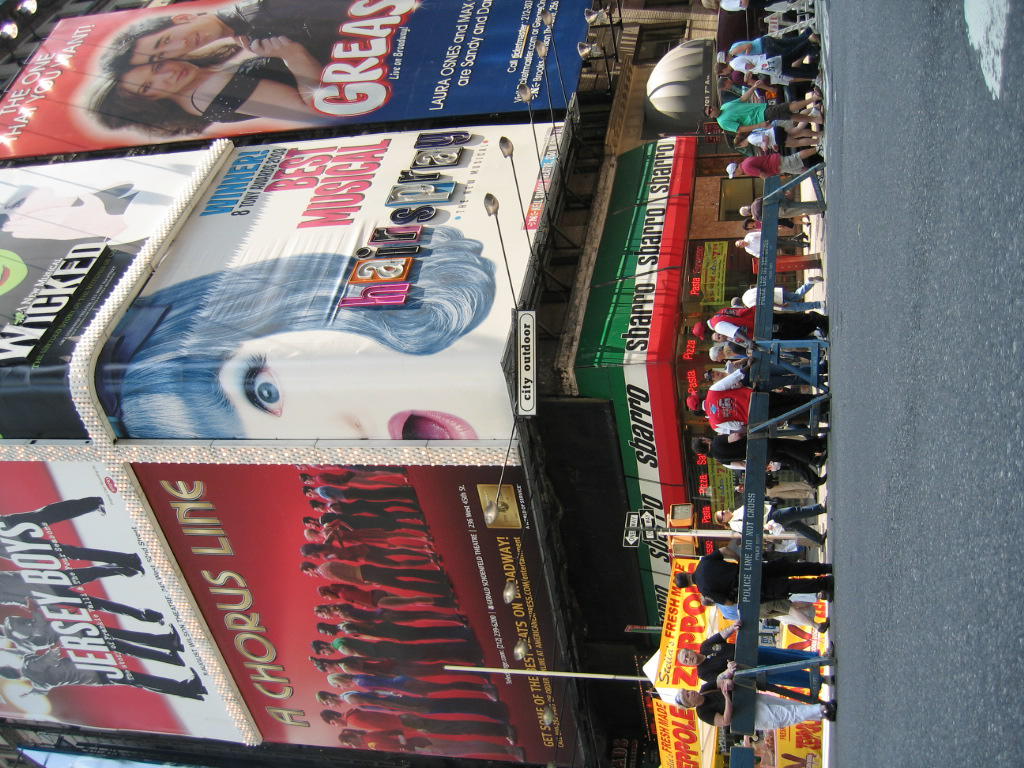 Buntes Treiben und grosse Hektik hier am Broadway. An den Haeuserfronten die Werbung fuer diverse Musicals und wenn man den Blick nach vorne wirft, ist der Time Square schon in Sichtweite.