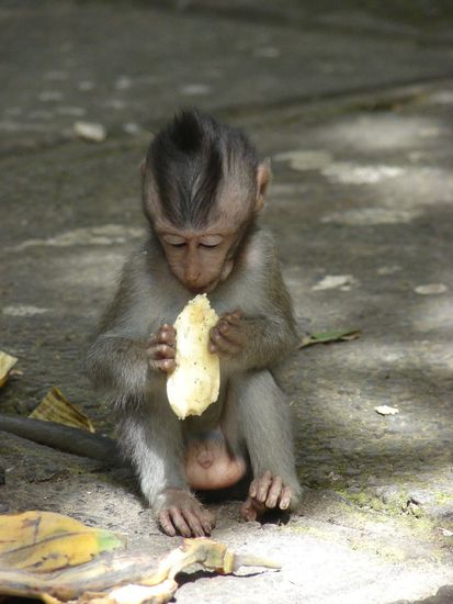 beim taeglichen Gebet...der Affee wartet auf das Opferschaelchen, da oft ein Stueck Obst mit drinnen liegt