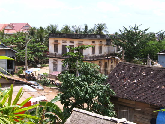 Mein erster Aufenthalt war in der kleinen Stadt "Kratie". Der Busfahrer hat mich mit ein paar Franzosen an einer Tankstelle abgesetzt und mit der Hand nach Osten gezeigt. Nur 2. Kilometer und dann sieht man die Stadt. Ich bin total ausgerastet und hab den Typ gesagt, dass ich keine 2 km mit dem Rucksack in die Stadt laufe. Die 2 kampodsch. Kilometer sind in Deutschland ungefaehr 10 km.